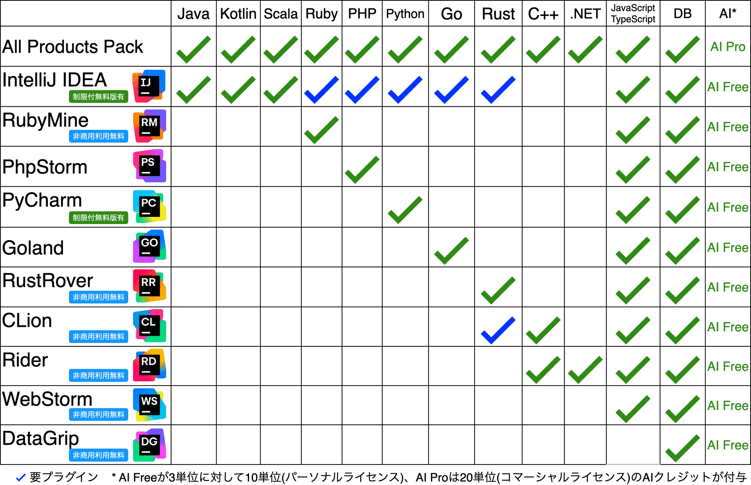 IntelliJ IDEAを持っていればPhpStorm、RubyMine、PyCharm、GoLand、RustRover、DataGrip、WebStormは必要ありませんか?