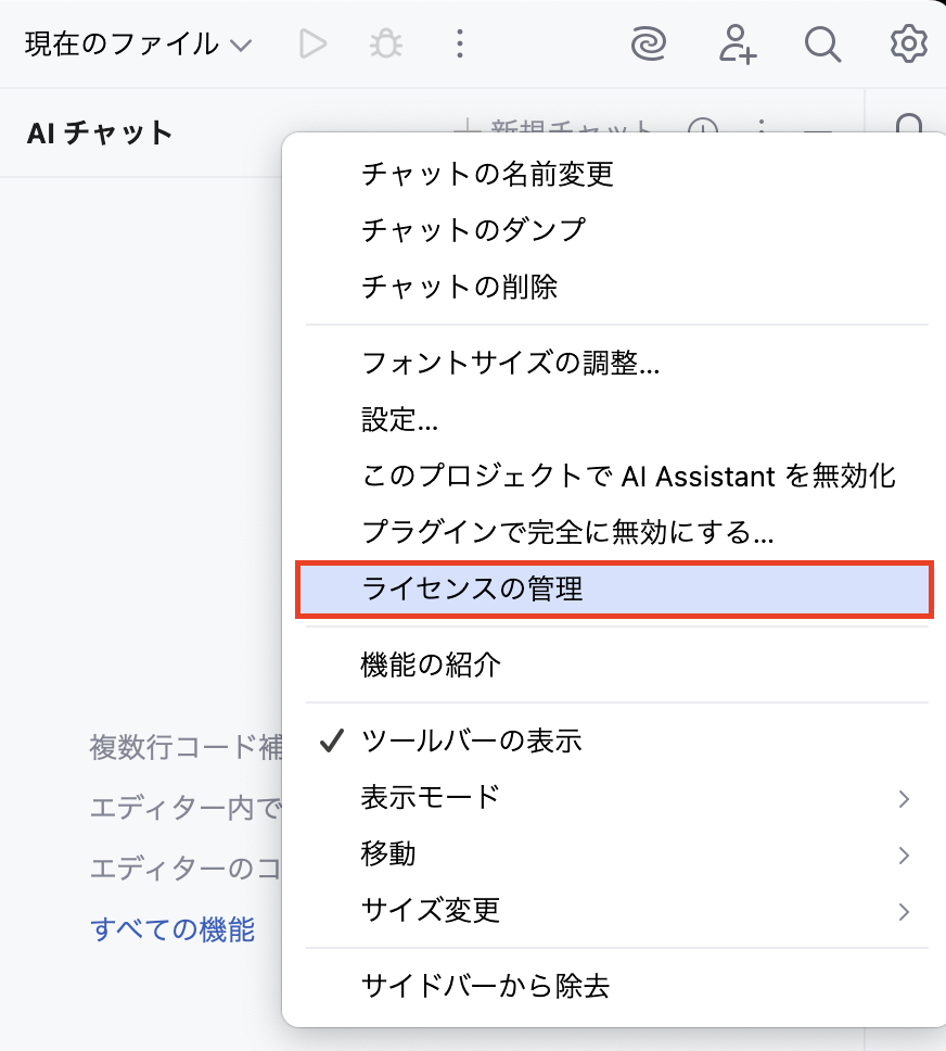 JetBrains IDE での AI ライセンスの切り替え手順は以下の通りです。(ReSharper の場合はこちらの手順をご確認ください。)