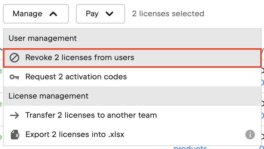 JetBrains Console で割り当てられているライセンスはチーム管理者またはオーガニゼーション管理者によってユーザから割り当てを解除(revoke)することが出来ます。